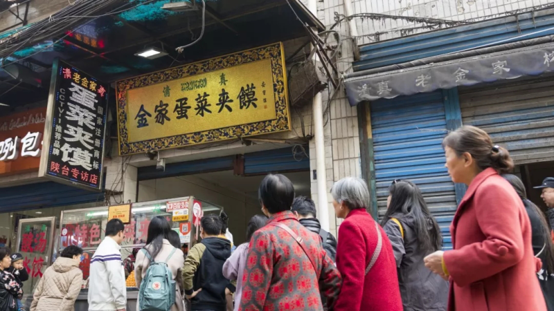 打开抖音满眼都是“蛋菜夹馍”,满耳都是《西安人的歌》。西安美食在抖音的抗把子,也是各大洒金桥攻略推荐的首位,早晨8:30还没有开门,就排了20米左右的队伍。金黄的咸蛋黄堆的像山一样,是勾人食欲的一大利器,每个馍夹2个蛋黄、一个煎蛋,再放一点玫瑰咸菜刷上香辣酱,简单又美味的蛋菜夹馍就做好了。每个夹馍7元钱,但是来买的基本都是10个起步,所以在老金家排队,前面有一个人就相当于有10个人。店内店外几个摊火力全开还是供不应求。