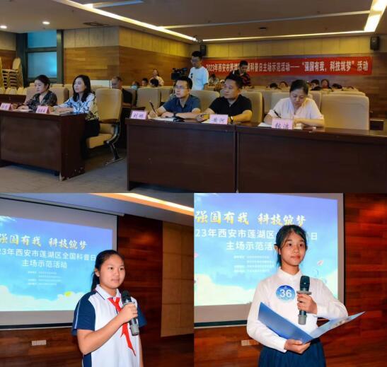 在示范活动两个环节中,首先开展了2023年西安市莲湖区“弘扬科学家精神”朗诵大赛,活动现场,同学们慷慨激昂,以饱满的情绪彰显出“强国有我,科技筑梦”向科学家学习的新时代青少年。经过激烈的角逐,共评选出十位优胜者,由评委老师们为十名朗诵大赛优胜者颁发证书和奖品,获得学生及家长们的一致好评。区科技局为十名大赛优胜者录制朗诵视频,并上报参加2023年西安市“弘扬科学家精神”朗诵大赛。