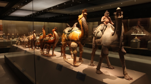《丝路起点 盛世商魂》,“活的穿越,镇馆之宝”。通过地下展出了唐代西市东北角“十字街”遗址、车辙遗迹,展出了部分出土文物,介绍了历史上西市作为丝路起点的重要地位、交易品类、商业文化和繁华胜景,体现了盛唐生活诸多方面的文化。