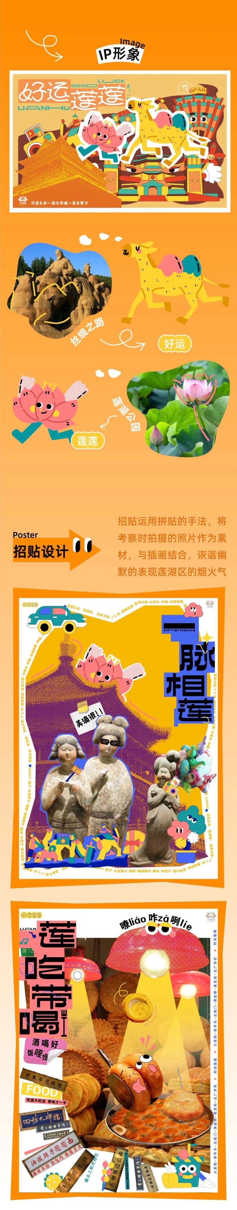 近日,莲湖区文化旅游和体育局与西安美院师生合作,以西安莲湖区的区域文化为研究对象,立足丝绸起点,探索集“历史文化之都、时尚购物之都、国际美食之都、莲夜繁华”于一体的内容视觉表达,大力宣传莲湖区域的创意特色,传递莲湖的融合新成就,并打造热门活力的创意品牌,结合视觉设计语言,塑造出城区品牌,为西安莲湖区增添新声音新活力,利于莲湖的城区宣传及文化传播。