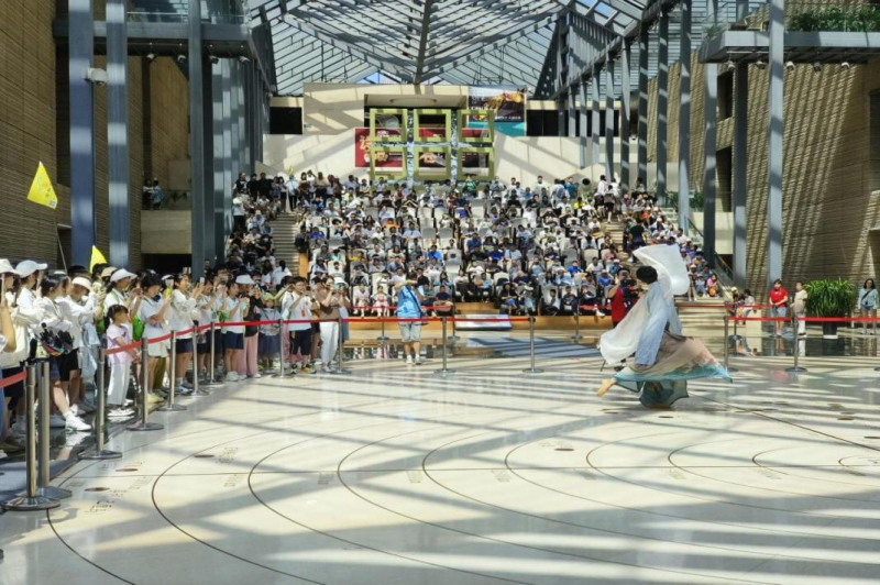 “起舞弄清影,何似在人间。”每一位舞者,如一朵盛夏的莲花,恣意绽放,每一个动作都自然流畅。伴随着美妙的音乐,优美的舞姿,给人以美的熏陶,观众们静静欣赏。在大唐西市博物馆这特别的舞台上,焕发着青春的生机和勃发的活力。