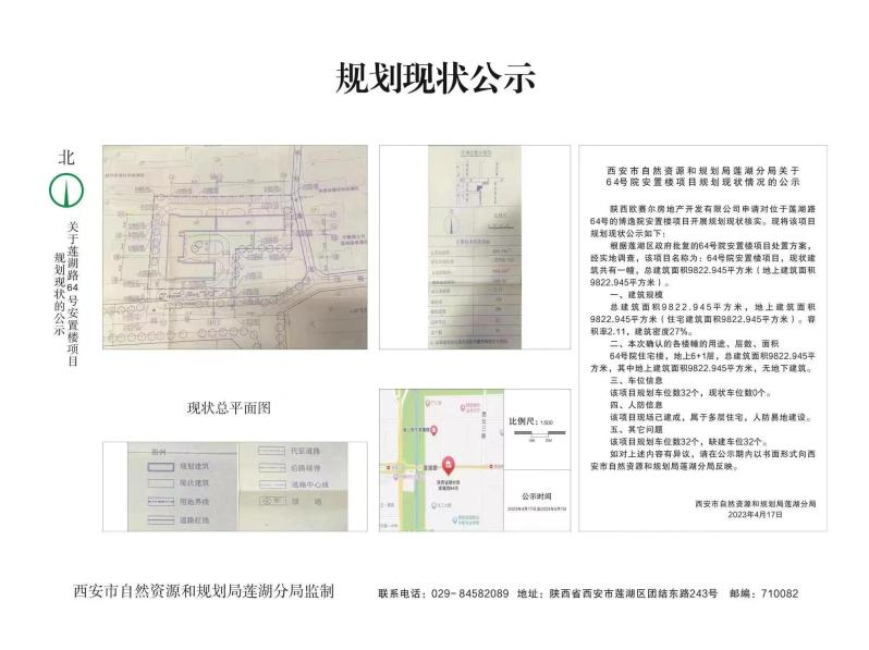 陕西欧赛尔房地产开发有限公司申请对位于莲湖路64号的64号院安置楼项目开展规划现状核实。现将该项目规划现状公示如下:
