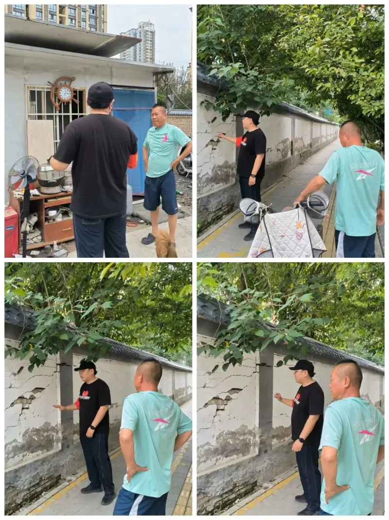 近期,为保障社区居民生命财产安全,红西村社区网格员与安全专干,对辖区进行了全面细致的安全巡查。在巡查过程中,发现永兴3号院旁边停车场的围墙存在明显裂痕,且有进一步扩大的趋势,存在一定的安全隐患。