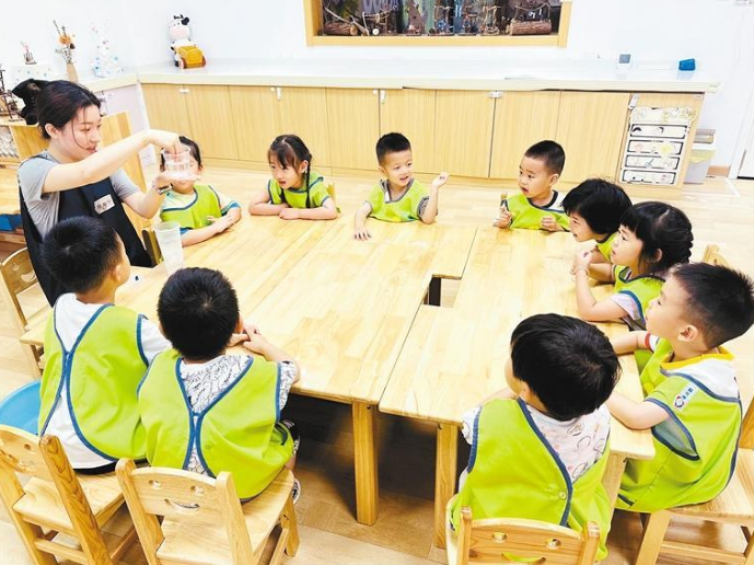 到了“放学”时间,刚下班的年轻妈妈惠小莉来到儿童中心,接回自己3岁的女儿。一年前,她把孩子送到中心,将自己从照顾孩子和平衡工作的矛盾中解放出来。在她看来,相比家里老人带孩子,托育机构更加专业,“一年多的时间,我发现宝宝的自理能力和生活习惯变好了,知道自己吃饭、收拾玩具,而且平时可以和小朋友多接触,交了好多新朋友,回家还会和我们分享。”