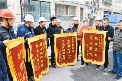 特别是社区,积极发挥桥梁作用。在施工队入驻当天下午,学习巷社区党支部书记、主任白秀兰就来到工地。“有什么需要社区解决的,一定全力以赴。”白秀兰说,老旧小区改造是项民心工程,社区就是施工方与群众中间的桥梁,施工队只需负责工程质量,其余事情,交给社区。