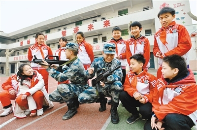 整齐帅气的单兵队列、精彩震撼的应用战术……西桃园小学的操场上,不时响起阵阵掌声,小朋友们睁大眼睛,认真感受着“蓝军装”的忠诚、荣誉和刚强,在潜移默化中让红色基因得到传承和发扬。