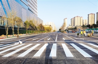4月20日,跟随观摩团来到莲湖区红庙坡路时,记者看到红庙坡路东段沥青路面已经铺设完毕,施工人员正在施画道路标线,西段正在紧张忙碌地进行收尾工作。得知正在建设的红庙坡路月底就要通了,附近居民王文丽高兴地说:“路通了,我上班就不用绕行了。”
