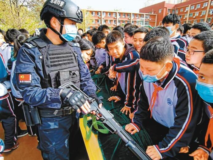 民警进校园开展普法宣传。 (莲湖区委社会治理办供图 均为资料图片)