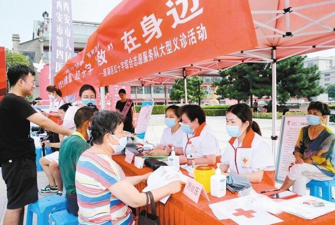免费测血糖、测血压,现场传授心肺复苏技能……8月8日上午,莲湖区红十字综合志愿服务队“志愿服务周”暨“喜迎二十大·博爱在莲湖”活动在钟鼓楼广场启动。活动通过救护培训、大型义诊、“三献”宣传等多种形式为莲湖居民送健康。