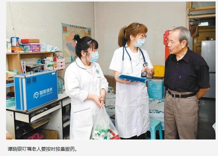 41岁的谭晓银医生在环西社区卫生服务中心工作已有16个年头,除了日常诊疗,还担负着辖区家庭病床管理工作。最多时谭医生负责6张家庭病床患者的管理,其中年龄最大的患者94岁,最小的68岁。“确实挺忙的,有时也很累,但大家都明白这是利民的好事,都很努力。”说话间,沿路不断有买菜回来的居民和谭医生热情地打着招呼。