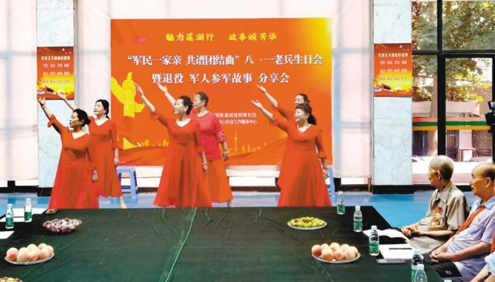 活动现场,伴随音乐声响起,一袭红裙的居民代表用精心准备的舞蹈拉开本次活动的序幕,随后独唱、快板、秦腔等一系列精彩节目也陆续上演。分享环节上,5位退役军人讲述了他们在部队保家卫国的英雄事迹,现场不时响起阵阵热烈的掌声。