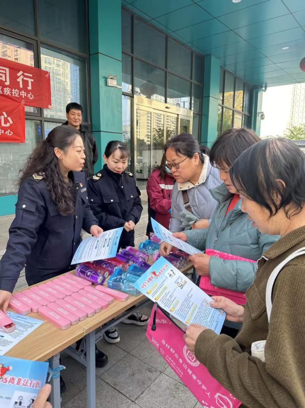 2024年12月5日区疾控中心公卫科联合生活用水科、学校卫生科一同前往汉城南路中际脑病医院门口处开展公共场所控烟、各类卫生法律法规知识宣传。旨在增强全民卫生安全意识,预防疾病维护健康。共向群众发放宣传品200余份,宣传资料200余份。