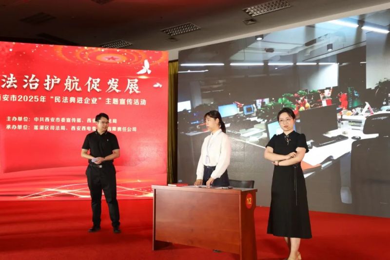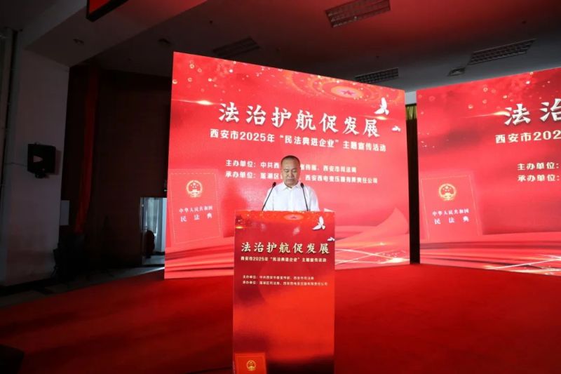 5月15日,由西安市委宣传部、西安市司法局主办,莲湖区司法局承办的西安市2025年“民法典进企业”主题宣传活动在中国电气装备西安西电变压器有限责任公司举行。活动以“法治护航促发展”为主题,通过“文艺演出+案例解读+集中宣传”的形式,为现场的企业职工带来了一场生动有趣的普法盛宴。西安市司法局党组成员、副局长雷景茹,莲湖区副区长、公安莲湖分局局长符杰,西电变压器有限责任公司党委副书记、纪委书记范孝红出席活动。