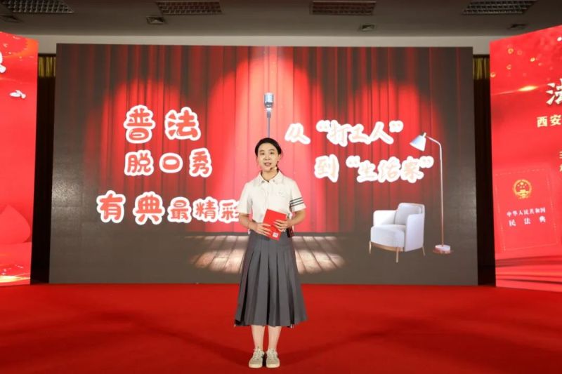 文艺演出环节,情景小品《试用期的“陷阱”》以职场新人林小新的经历,生动演绎劳动合同纠纷及维权要点;相声《老王的“民法典账本”》用幽默语言串联与网购退货、物业纠纷等相关的法条,让观众在欢声笑语中掌握法律知识;原创歌曲《法治星光》唱响法治建设者的初心,引发强烈情感共鸣;法治评书《杨志卖刀遇新规》以民间故事,强调尊法学法守法用法的重要性;脱口秀《从“打工人”到“生活家”》以犀利段子解读“996”合法性、家务补偿等热点,现场掌声不断;普法辩论赛《职场攻防战》,在唇齿交锋中解析职场案例,将氛围推向高潮。