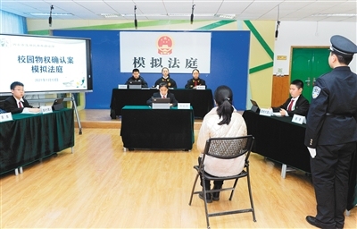 1月13日,小学生们在模拟法庭上进行法庭辩论。当日,莲湖区司法局联合区人民法院在青年路小学开展《民法典》进校园模拟法庭活动,再现了一起因盗窃行为引发的“物权确认”案,1000余名师生通过校园直播进行了观看,对《民法典》中的物权、刑事责任能力划分等有了新的认识,有效增强法治教育的吸引力、感染力。