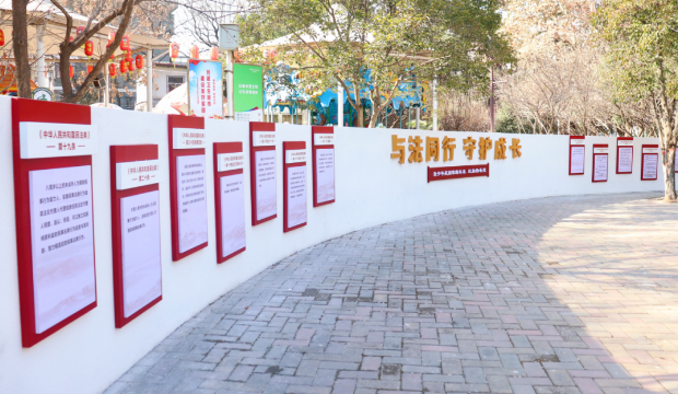 儿童公园曾是俗称“举院”的明清贡院,是陕西省唯一的儿童公园,每日接待游客量达1000余人。莲湖区司法局针对青少年的身心成长特点,运用色彩明亮的卡通造型,选取朗朗上口的标语口号,围绕民法典、未成年人保护法等法治主题,设置法治文化雕塑、法治宣传标牌、法治宣传展板等,进一步加强普法景观的功能性、趣味性和互动性,在青少年心中播撒下法治的种子。