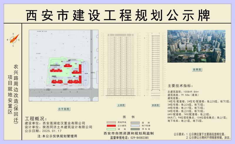 农兴路周边改造(保回迁)项目就地安置区东起未央路,西至上和城小区,南起红庙坡路,北至交大二附院家属院。规划总建筑面积105849.84平方米,其中地上建筑面积71040.19平方米,地下建筑面积34809.655平方米。