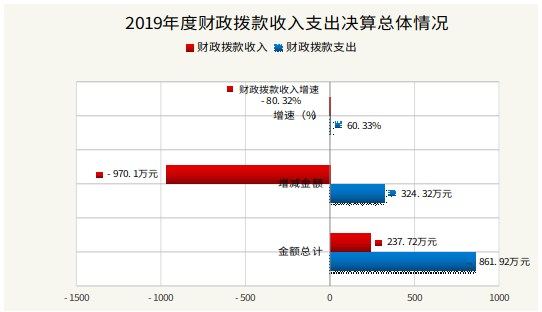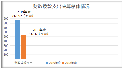 2、2019年度财政拨款支出861.92万元,较上年增加324.32万元,增长60.33%,主要原因是2019年度支出了军民融合项目及众创载体项目。