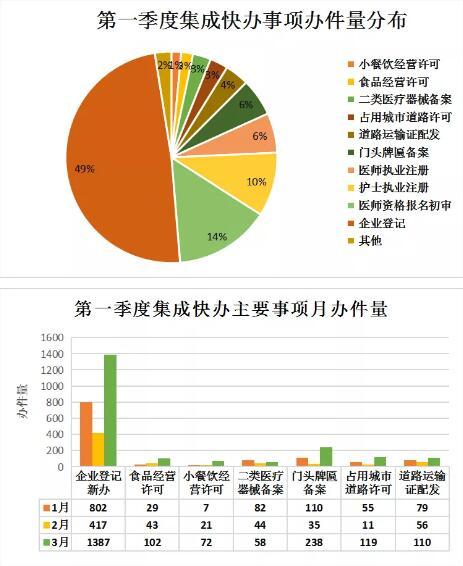改革以来,累计推出30个“集成快办”事项,办理业务6681件,占审批业务总量(不含1-2月企业登记办件量)74.1%。