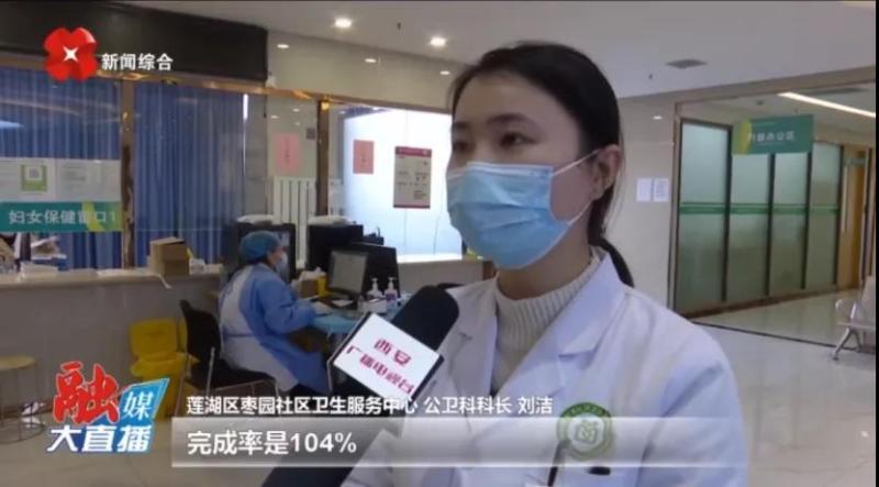 我们成人第三剂次已经接种了7285剂次,完成率是104%,学生接种了一万七千多剂次,完成率是98.3%,我们预计在两天内完成所有的接种。