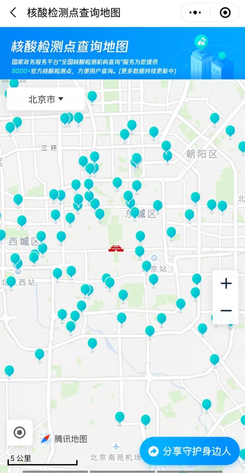 国家政务服务平台核酸检测点查询地图(手机截图)
