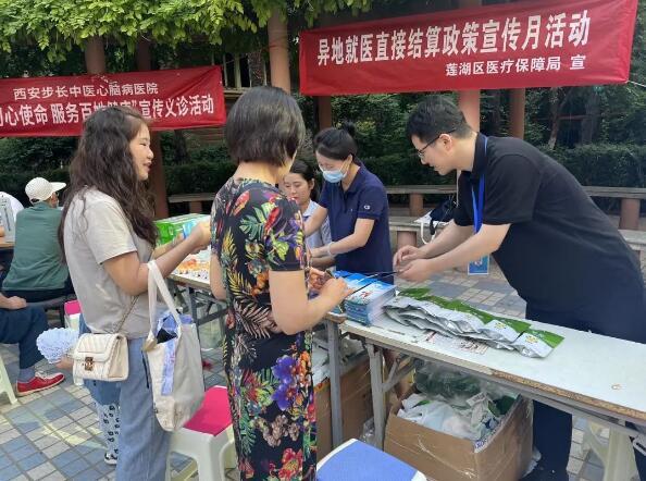 6月14日上午,莲湖区医疗保障局启动异地就医直接结算政策宣传月活动,组织西安步长中医心脑病医院、西安莲湖五潮中医医院、广行中医诊所,共同走进西关街道旭景名园小区开展政策宣传、爱心义诊服务。