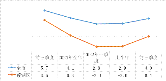 图 2021年前三季度以来莲湖区地区生产总值增速对比