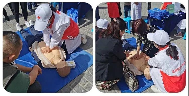 莲湖区红十字会在洒金桥十字开展世界红十字日暨防灾减灾宣传活动。活动中,工作人员向参加活动的居民群众发放宣传咨料,科普防灾减灾相关知识。红十字志愿者通过实践操作,向大家教授心肺复苏救援技能和技巧,吸引了众多群众前来学习观看。同时,医护志愿者们还为群众开展了义诊、免费量血压等为民服务,热心解答各类健康咨询。