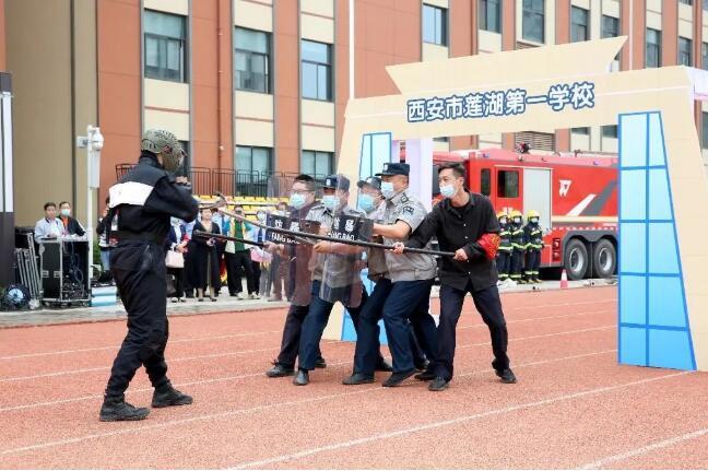 本次演练涵盖了火灾应急救援疏散演练、预防校园暴力入侵应急演练、道路交通安全宣传教育、各类设施设备互动展示等内容。活动现场,莲湖区教育局主要负责人要求全区各校园要加强与公安、综治、交警、消防、应急等部门密切合作,完善安全防控体系,加强安全应急演练,不断提高师生应急意识和能力,健全校园安全管理制度,为教育改革发展提供有力保障。莲湖区教育局现场向公安、交警、消防部门赠送锦旗。公安莲湖分局相关负责人对加强警校协作、抓好“护校安园”工作进行了安排部署。