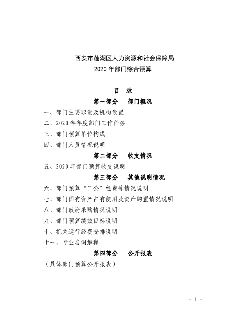 西安市莲湖区人力资源和社会保障局2020 年度部门综合预算公开报告.pdf