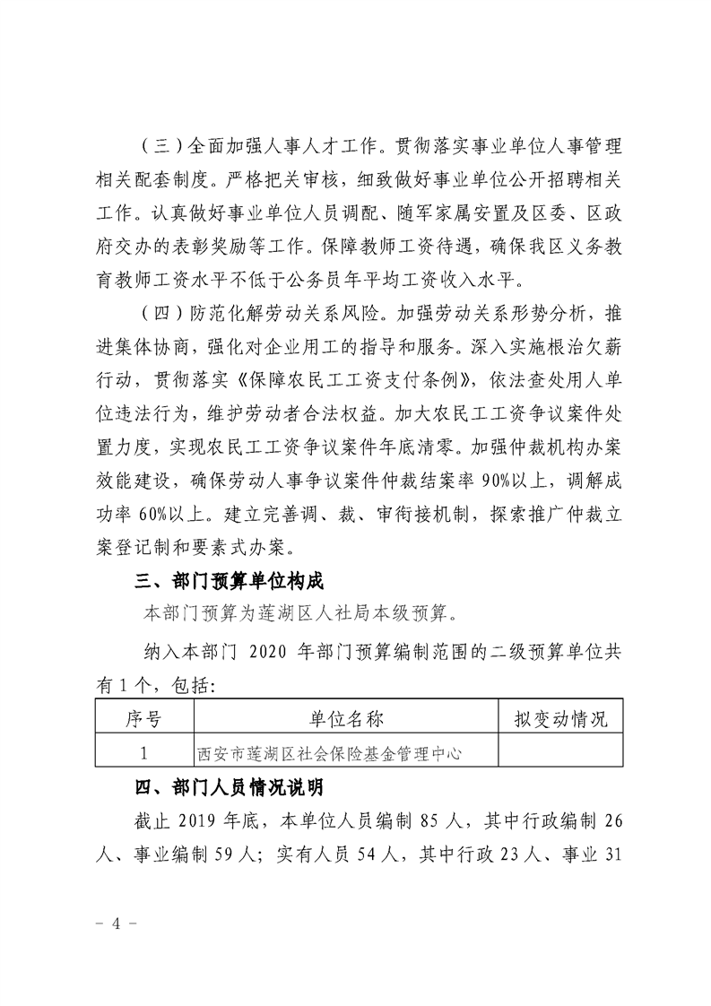 西安市莲湖区人力资源和社会保障局2020 年度部门综合预算公开
