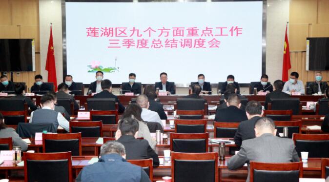 11月14日上午,莲湖区召开九个方面重点工作三季度总结调度会,学习贯彻党的二十大精神和习近平总书记来陕考察重要讲话重要指示精神,认真落实全市九个方面重点工作三季度总结调度会精神,盘点分析前三季度经济运行和重点工作进展情况,研究部署下阶段工作,动员全区上下坚定信心、鼓足干劲,冲刺四季度、决战“八连优”,以实干实绩推动党的二十大精神在莲湖落地见效。区委书记马翔讲话,区政府区长胡广乐主持会议。
