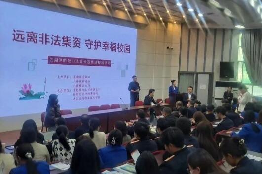 活动组织律师、民警和银行工作人员走进校园开展防范非法集资宣传活动。“同学们,你们知道什么是非法集资吗?”活动中,律师向在场的学生讲解了非法集资的含义、常用套路及防范措施等,提醒大家非法集资属违法犯罪行为,参与非法集资活动受到的损失,由参与者自行承担,参与者利益不受法律保护。所以,大家在面对高额回报的宣传时,要提高警惕,不要轻信。