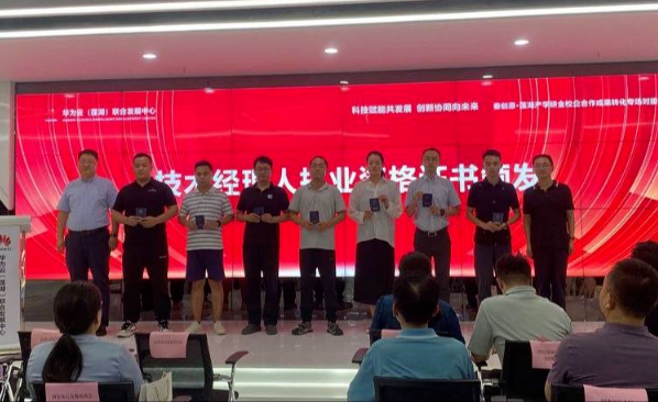 活动现场,西安市科技局成果转化与校地合作处副处长安森和莲湖区科技局局长袁展锋为西安云创智联科技有限公司、西安云巢科技有限公司、西安洪泰大程孵化器智能科技有限公司等7家机构技术经理人代表颁发西安技术经理人执业资格证书。