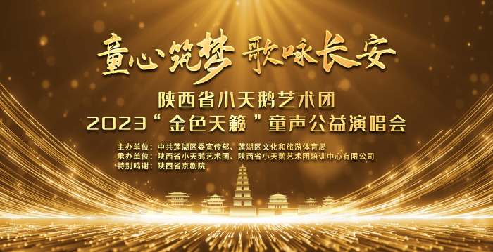 童心筑梦,歌咏长安。10月27日至28日,由中共莲湖区委宣传部、莲湖区文化和旅游体育局主办,陕西省小天鹅艺术团、陕西省小天鹅艺术团培训中心有限公司承办的2023“金色天籁”童声公益演唱会将在陕西省小天鹅艺术团总部剧场温暖开启。