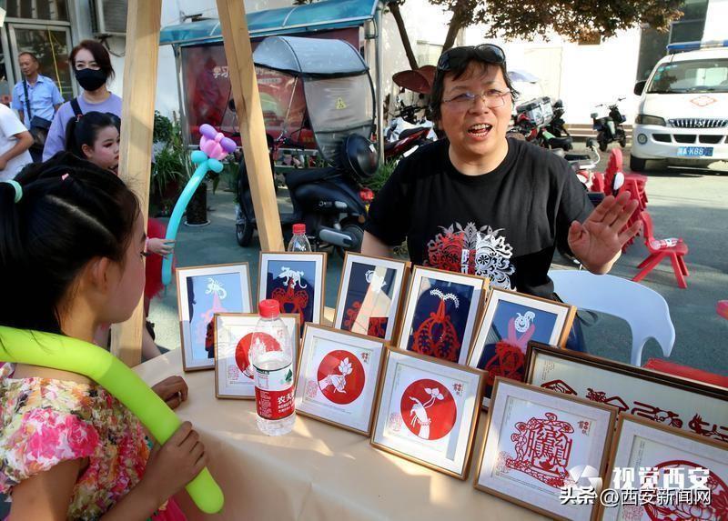 “奶奶,这幅剪纸里的小蛤蟆为什么趴在剪刀上啊?”“这表示‘剪五毒’,也是咱们关中地区在端午节的传统民俗——民间所说的‘五毒’是蜈蚣、蝎子、蛇、蟾蜍、壁虎。在端午时节这五种小动物就会出来散发各种毒素,所以咱们就剪‘剪五毒’贴在门上,不让这五种东西进到院里。”活动现场,非物质文化遗产“西安剪纸”项目代表性传承人刘惠霞的剪纸吸引了很多小朋友围观,已七旬高龄的刘惠霞一边给孩子们讲解剪纸技巧,一边“科普”西安剪纸背后的陕西民俗文化,“孩子们感兴趣,我就高兴,咱们这些老非遗,得有娃娃们的新传承,才更有活力!”