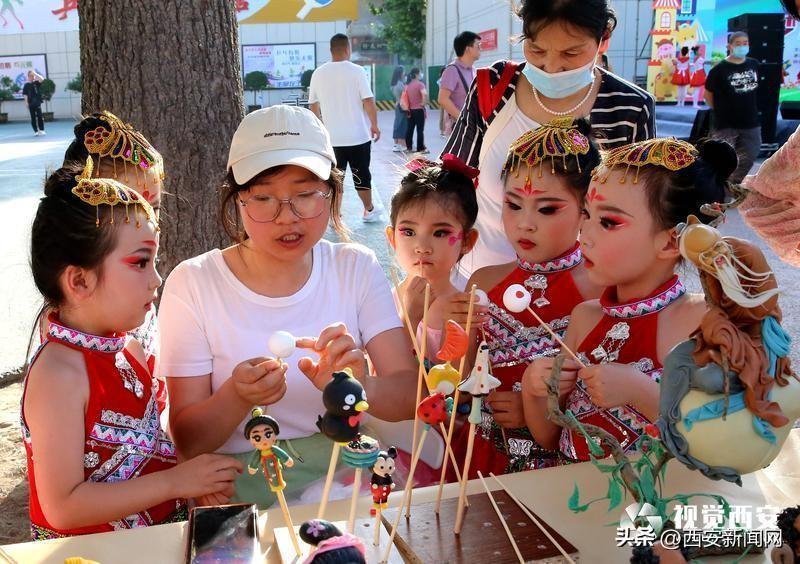 “筑梦童真·放飞梦想”少儿系列文化活动由西安市莲湖区文化和旅游体育局主办,西安市土门工人文化宫、莲湖区文化馆承办。用贴近当代儿童生活以及当代儿童喜闻乐见的方式,为孩子们提供与非遗文化等中华优秀传统文化“面对面”“零距离”互动的机会——作为本届活动的一大亮点,“筑梦童真·放飞梦想”非遗展邀多位非遗传承人带着各自的作品亮相现场,在糖画、剪纸、面塑、传统魔术……展台为孩子们呈上非遗盛宴,让众人共享魅力非遗。