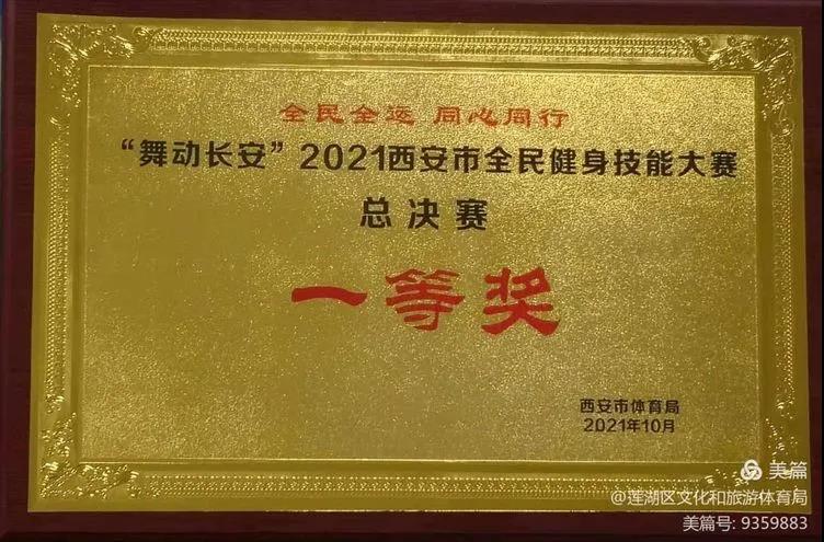 经过2天的热烈紧张比拼,莲湖区4支代表队分别获得健身操舞二等奖、武术一等奖、太极拳一等奖、综合一等奖,总成绩荣获“舞动长安”2021西安市全民健身技能大赛总决赛一等奖。