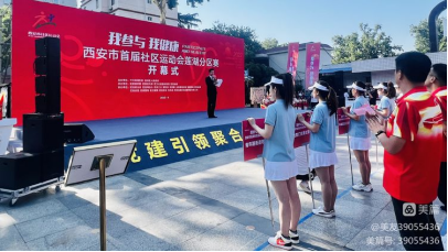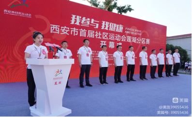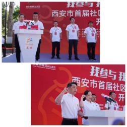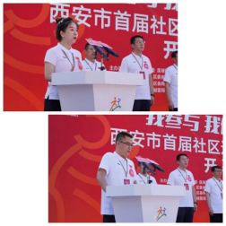 开幕式在激昂的国歌声中拉开序幕。社区党组织书记代表、社会体育指导员代表发出倡议;分区赛组委会主任、区委常委、区委组织部部长任奇致开幕辞,表示举办运动会是贯彻落实习近平总书记“体育强则国家强,国运兴则体育兴,重要论述、全民健身国家战略的有力践行;是全面展示莲湖居民群众健康向上精神风貌的新实践,是深化“莲心•360 民呼我行”专项行动,回应群众日益增长的多元化体育需求,为民办实事的具体举措。运动员、裁判员代表分别围绕参赛和执裁进行宣誓;莲湖区委书记马翔宣布“西安市首届社区运动会莲湖分区赛开幕”。随着参会领导嘉宾共同推动启动杆,西安市首届社区运动会莲湖分区赛正式拉开帷幕。