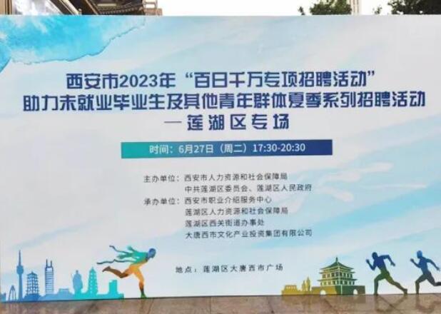 为进一步促进高校毕业生等青年群体就业,畅通求职招聘渠道,促进人岗精准匹配。6月27日,莲湖区人社局联合市职介中心在大唐西市广场组织开展“职引未来 筑梦青春”西安市2023年“百日千万专项招聘活动”莲湖专场。