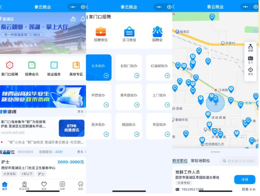 观摩活动现场,莲湖区围绕掌上平台搭建、服务驿站建设、就业服务机制建立、供需精准匹配等方面工作内容进行讲解介绍:莲湖区依托全省“秦云就业”公共服务平台,建设“秦云就业莲湖掌上大厅”,将“人找岗”和“岗找人”相结合,推进招聘岗位区域化发布,实现群众岗位获取精准查找、智能导航、快速匹配;通过强化线上线下协同发力和公共服务与市场化协同配合,提供充足就业岗位,强化专业服务提供;通过建立区级部门、街办、社区三级联动工作机制,形成工作合力,全面获取群众需求,提供精准就业帮扶;围绕就业创业、人才服务、社会保障、劳动维权四方面服务,构建“四位一体”人社服务掌上服务体系,实现157项人社业务的集成式办理。