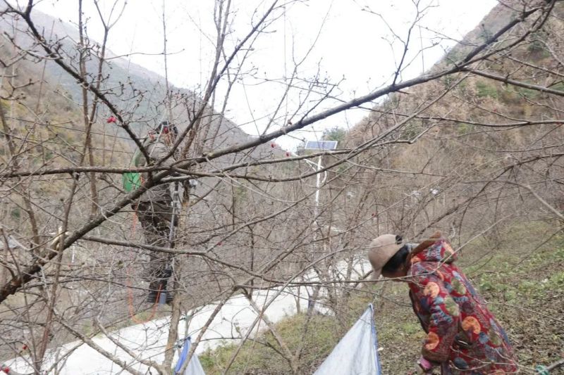 采摘山茱萸是一件很麻烦的事,村民要攀上树尽心尽力地一颗一颗采摘,十分危险,同时在采摘的过程中,有时难免会折损树枝伤及山茱萸树。 不过,今年采摘山茱萸却有所不同。老庄子村的王明生、陈桂花夫妻二人用上了先进的设备——山茱萸采摘机,只需要勾住树枝,然后采用电震动的原理,产生轻微而高频的震动,树上成熟的果实就像被惊飞的蜜蜂,纷纷落到树下铺开的布单上,只十几分钟就能采摘完一棵树。