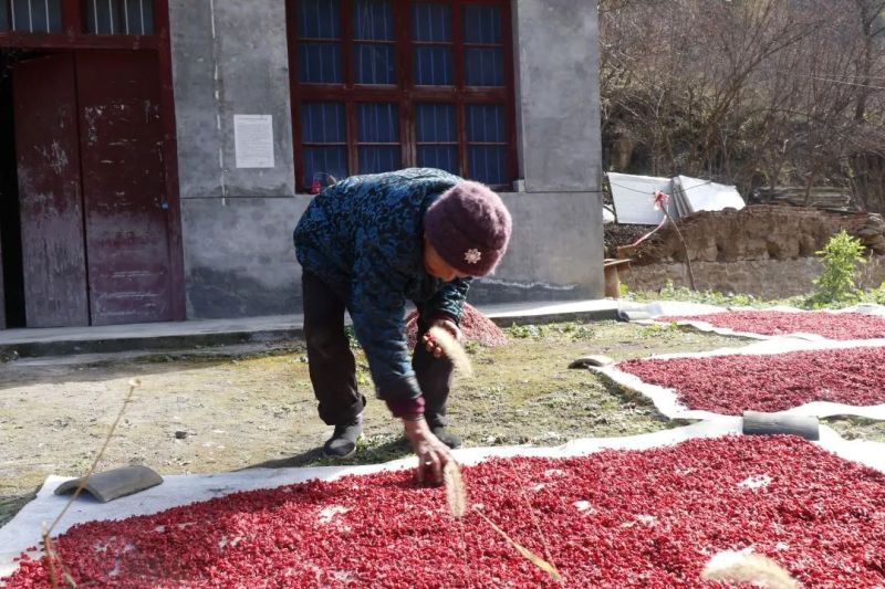 离开老庄子村时,已是夕阳西下,红霞满天,山路上村民家门前晾晒的山茱萸,就像一簇簇跳动的火苗,点燃了脱贫致富的希望。