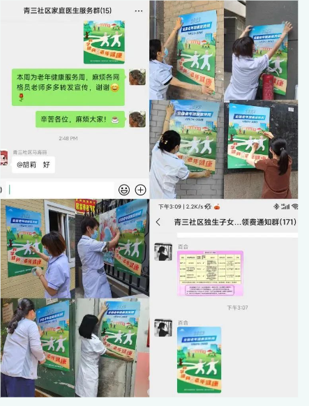 青年路中心通过LED显示屏、微信公众平台、多媒体等形式播放老年科学健身宣传视频、宣传画等,持续开展线上宣传。通过社区网格微信群发送《全国老年健康宣传周》活动海报,让宣传效应直达社区居民。为加强与居民的“邻里”联系,青年路中心还量身制作“家庭医生团队‘进格入网’公示牌”,本周首先在辖区新华书店家属院、许士庙街8号院等10个小区粘贴公示。