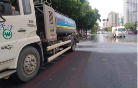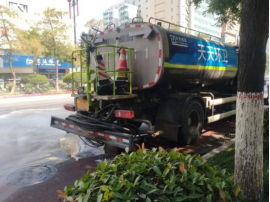 区城管局出动洒水车1辆、高压小水车1辆,对北关正街进行冲洗整治,同时加大该路段保洁车辆作业频次降低道路扬尘。