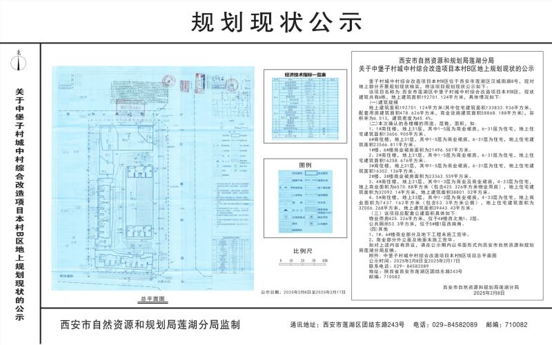 中堡子村城中村综合改造项目本村B区项目位于西安市莲湖区汉城南路8号,现对地上部分开展规划现状核实,将该项目规划现状公示如下: