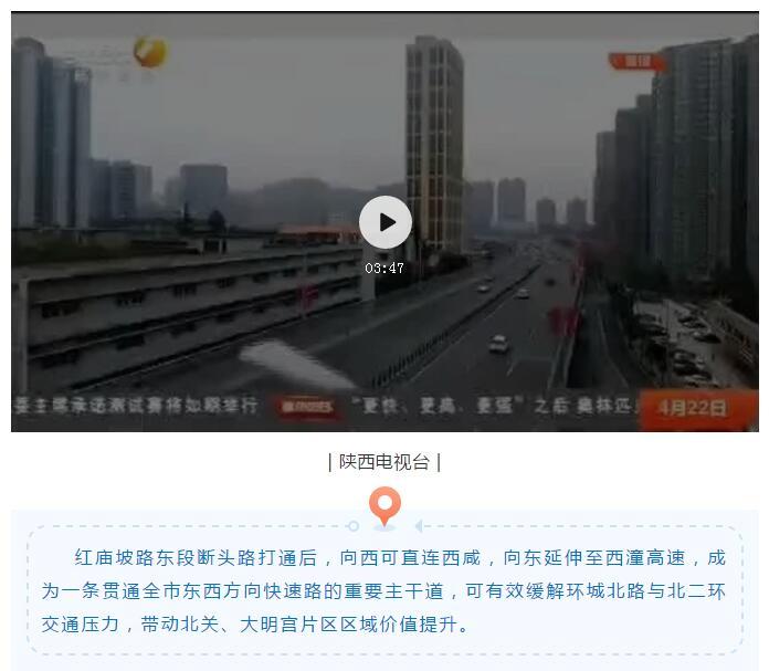 “这个市政工程从立项到施工,工作亮点很多。”雷凯说,征收拆迁快:38天完成14家企事业单位、417户商户、277户居民征迁任务。建设周期短:2月5日启动建设,组织施工人员24小时轮班作业,建设工期由6个月缩短到3个月,项目将于4月底建成通车。群众实惠多:征收与安置楼建设同步进行,在清水源地块异地安置群众400余户;改变周边老旧面貌和交通拥堵现象,为万户群众提供生活便利,增强群众获得感、幸福感。同时,带动作用好。打通红庙坡路与未央路之间的“中梗阻”,向西可直连西咸,向东延伸至西潼高速,成为一条贯通全市东西方向快速路的重要主干道,可有效缓解环城北路与北二环交通压力,带动北关、大明宫片区区域价值提升。